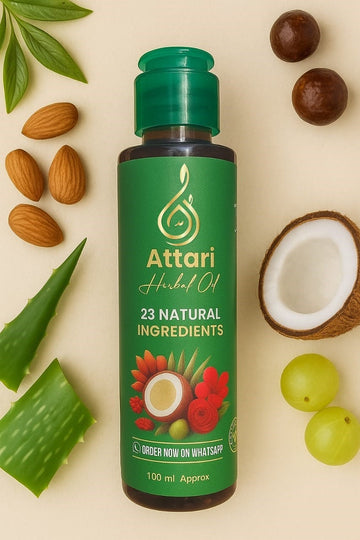 Attari Herbal Oil is more than just an oil—it’s a natural treatment for healthy, strong, and beautiful hair. Inspired by Dawat-e-Islami, the name "Attari" reflects trust, purity, and honesty. Our mission is to protect people from chemical-based products and provide a 100% herbal solution that truly nourishes the roots of your hair.